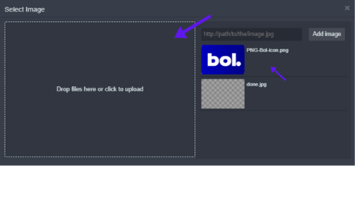 Stap 6 – Klik eerst op ‘Drop files here or click to upload’, vervolgens upload je het logo, en kun je je logo terugvinden waar het Bol logo nu staat.