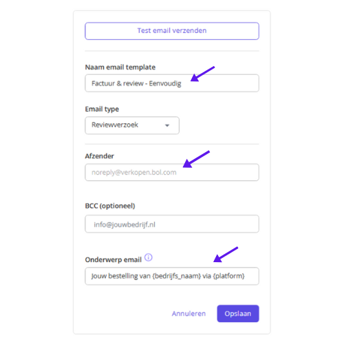 • Email type: Zet hier neer ‘Reviewverzoek‘.