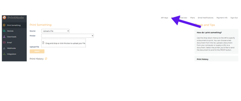Stap 1 – Ga naar je Printnode account, log in en selecteer ‘API Keys’